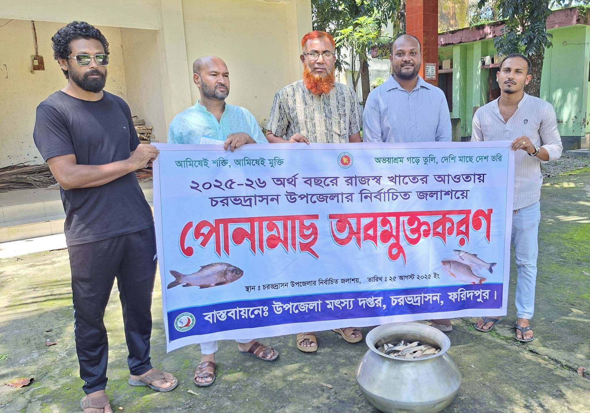 চরভদ্রাসন উপজেলার বিভিন্ন প্রাতিষ্ঠানিক জলাশয় ও এমকে ডাঙ্গী বিলে সর্বমোট ৯টি স্পটে প্রায় ৩২৩ কেজি পোনামাছ অবমুক্ত করা হয়। এ সময় উপস্থিত ছিলেন মান্যবর কৃষিবিদ প্রশান্ত কুমার সরকার, জেলা মৎস্য কর্মকর্তা, ফরিদপুর মহোদয়; সিনিয়র সহকারী পরিচালক, মৎস্য অধিদপ্তর, ফরিদপুর মহোদয়।